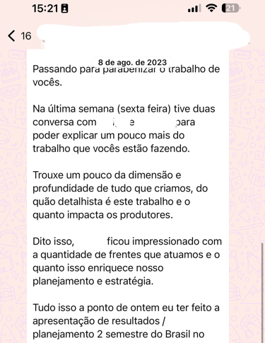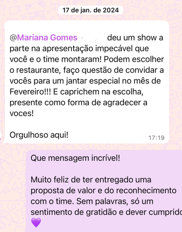 E veja também feedbacks de projetos que liderei como executiva, onde já aplicava essa mesma lógica de decisão, foco e organização dentro de operações reais.
